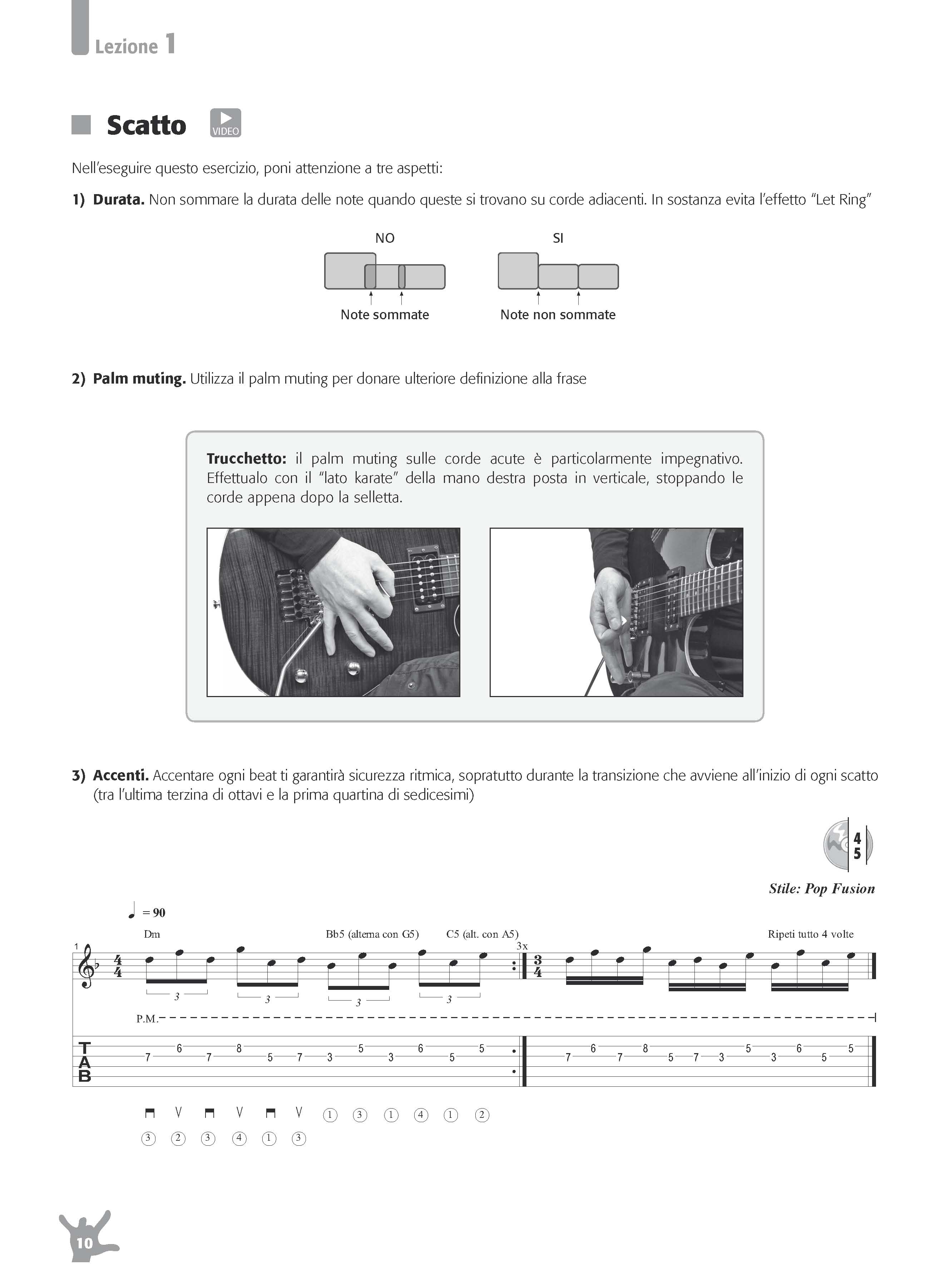 Lezioni 1/6 - Svilupperai la tua pennata alternata lavorando su cinque importanti aree e su un assolo riepilogativo. Le aree sono: