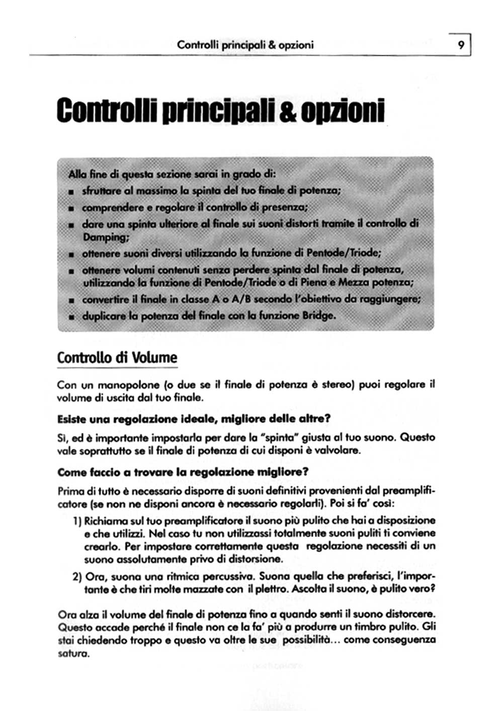 Questo testo spiega in modo pratico, chiaro e semplice come ottenere grandi suoni di chitarra regolando il proprio preamplificatore! Indica decine di soluzioni circa l'utilizzo di amplificatori, effetti, processori, pedaliere MIDI controller e quant'altro di utile ed indispensabile ad ogni chitarrista. Il tutto in maniera innovativa: